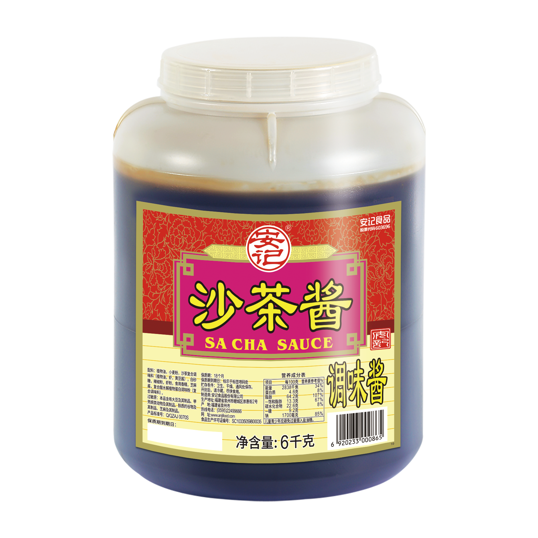 (桶装)6000g安记沙茶酱2桶装